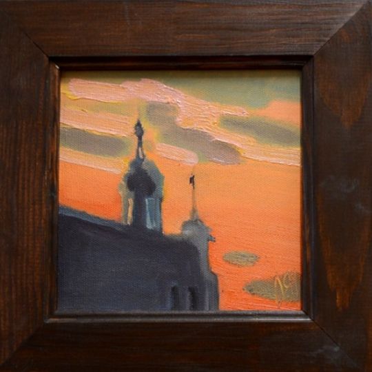 Серия видов Сарова с птицами и закатным небом. Этюд с натуры