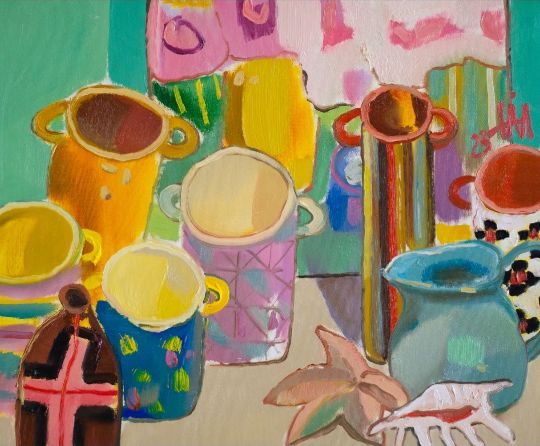 Живой авангард. Экспрессивная работа, море цвета и энергии. В постановке использована авторская керамика из личной коллекции автора.