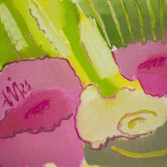 Получив на праздник сразу несколько букетов тюльпанов, сразу составила композицию и достала краски и холст.