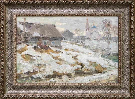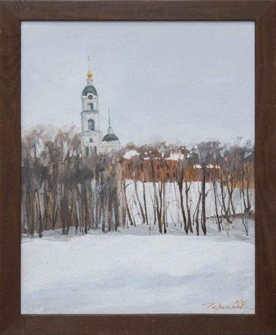 Зимний квадрат. Тоже не самый известный вид на Саровский монастырь. Работа с натуры. Чтобы создавать зимние этюды, автор научился писать двумя руками).